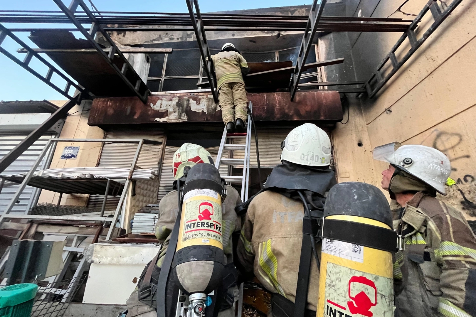 İzmir’in Bornova ilçesinde demir atölyesi olarak kullanılan iş yerinde çıkan yangına, İzmir Büyükşehir Belediyesi İtfaiyesi çok sayıda araç ve personelle müdahale etti. Yangını kontrol altına alan ekipler soğutma çalışmalarını sürdürüyor.