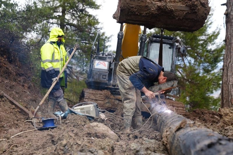 Bunun üzerine hızlıca bölgeye intikal eden MESKİ Genel Müdürlüğü ekipleri, Cehennem Deresi mevkiinden terfili olarak çalışan 350 milimetre çapındaki çelik içme suyu hattını kısa sürede onardı.